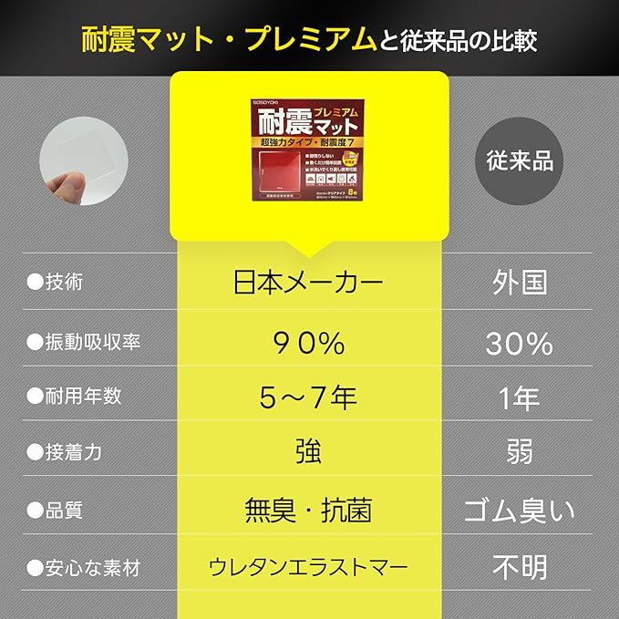SOSOYOKI 耐震マット プレミアム 超強力タイプ 地震対策 耐震度7 耐震ジェル 防振マット 耐荷重100kg 繰り返し利用可能 強力粘着 クリア 8枚入り