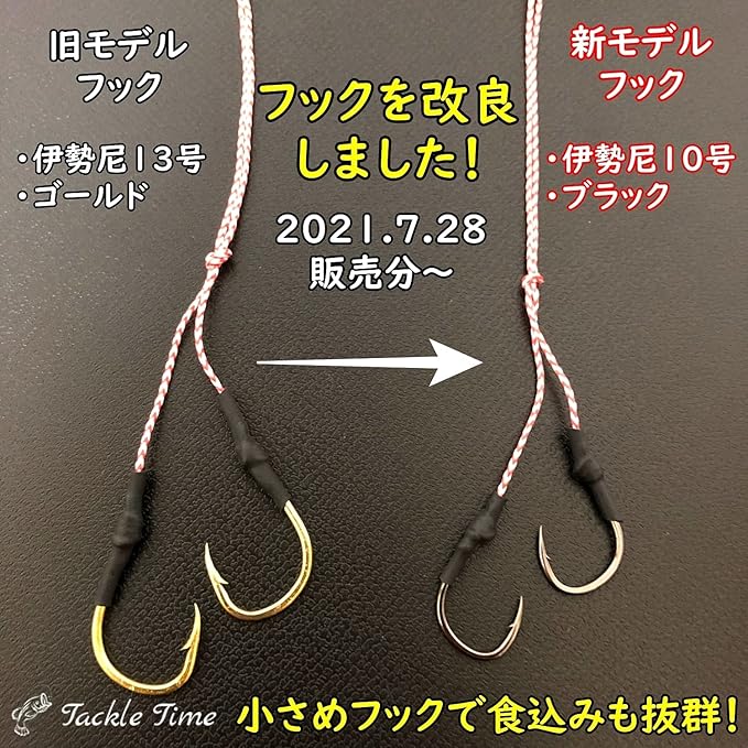 【特徴】水切れの良い楕円型ヘッドに刺さりの良い段差フックを備えた遊動式タイラバです。