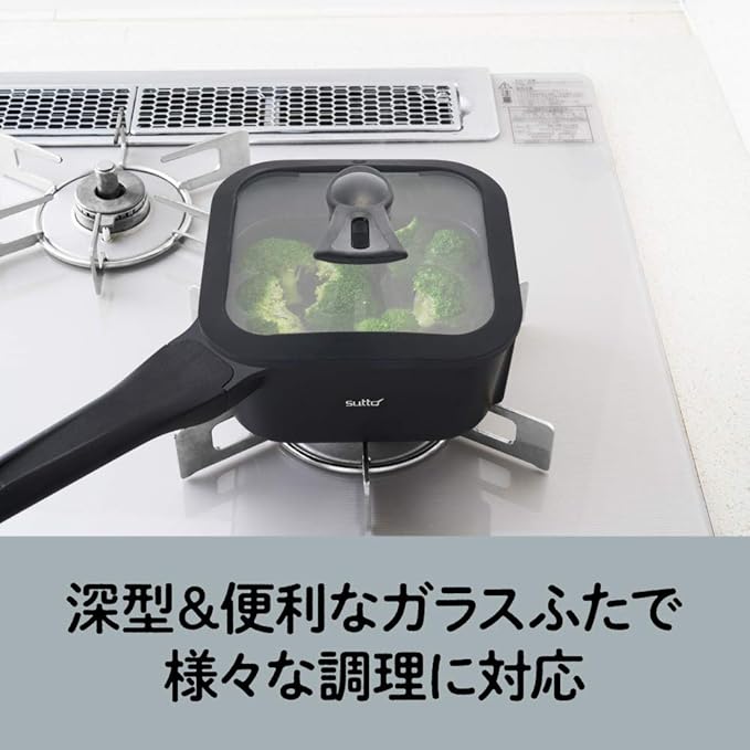 四角いフライパン sutto(スット) 16 8cm オール熱源対応 (ガス火・IH対応) ブラック 深型 ドウシシャ