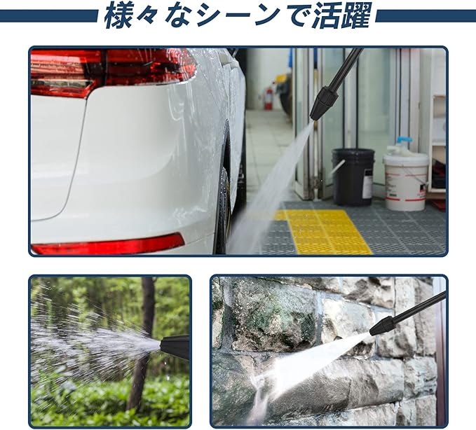 【様々なシーンに適用】地面、駐車状の頑固な汚れや、苔など発生した外壁やベランダなど屋外の掃除、オートバイ、自動車のメンテナンスに幅広く適用されています。堅固な高品質材料を使用し、摩耗に耐え、耐久性も高い、長い使用寿命を誇ります。