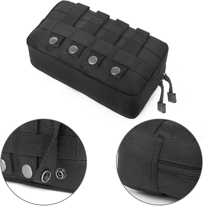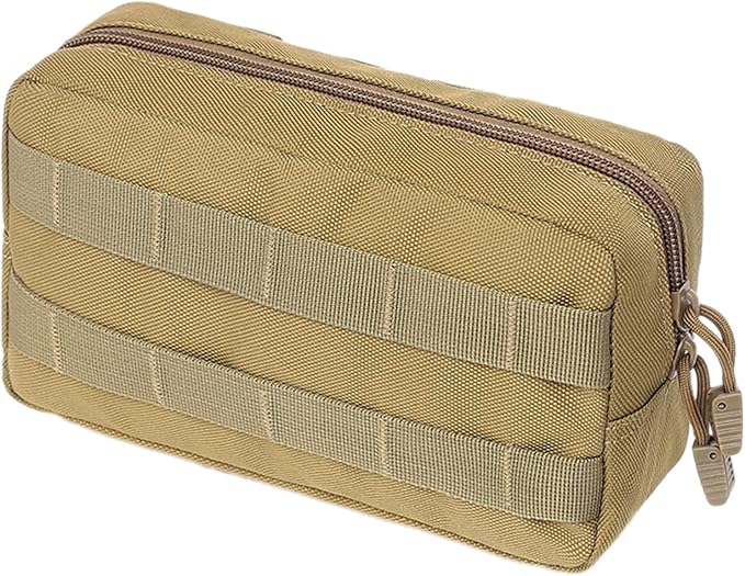 【大容量】-- スマホ、ペットボトル、懐中電灯、メガネ等をコンパクト収納できるミリタリーポーチ。
