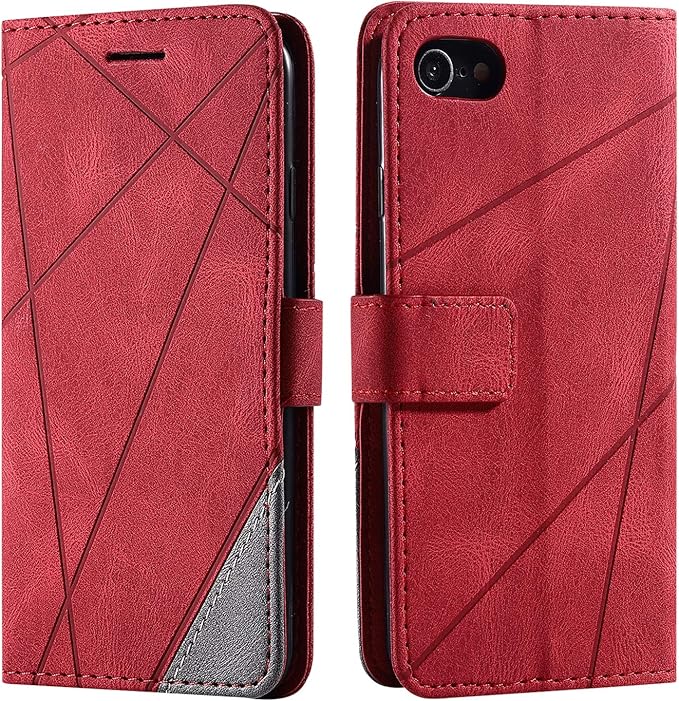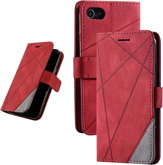 iPhone se(第三世代), iPhone se(第二世代),iPhone 8,iPhone 7兼用 手帳型 財布型 カード収納 スタンド機能 サイドマグネット TPUケース 軽量 ストラップホール 収納力 QI充電対応 横置き機能 あいふぉん あいほん アイフォン レザーケース ソフトシリコン マホケース 防指紋 レンズ保護 全面保護 (レッド)