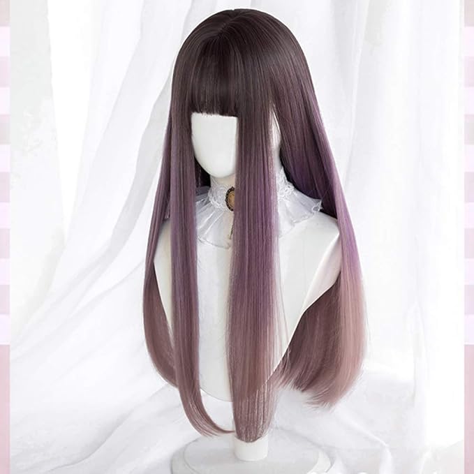 原宿風 GAL系 レディース ウィッグ フルウィッグ ロング ストレート パープル グラデーション ロリータ Lolita 原宿系ウィッグ