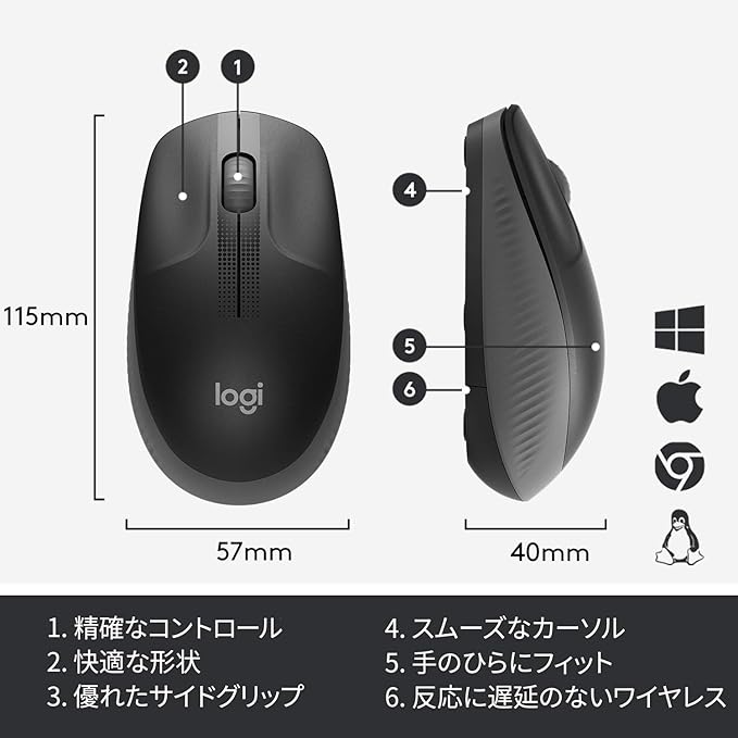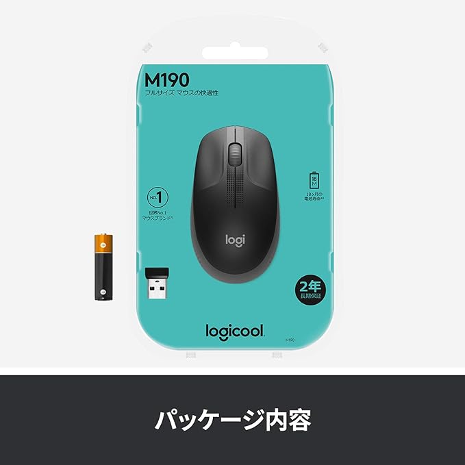 ロジクール フルサイズ ワイヤレス マウス M190BK ワイヤレスマウス 左右対称 無線 USB windows mac chrome M190 ブラック 国内正規品