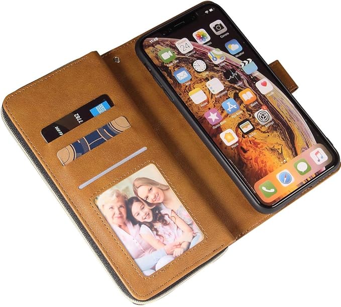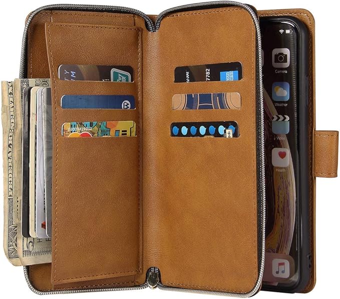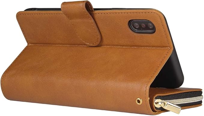 iphoneXS/X ケース iphone XS/X ケース 多機能【APOLA】高級レザー カード9枚付き ジッパーバッグ (小銭やイヤホン、コインなど収納可能) 財布合一 アイフォンXS/X 手帳型 耐汚れ 衝撃吸収 スマホ ケース