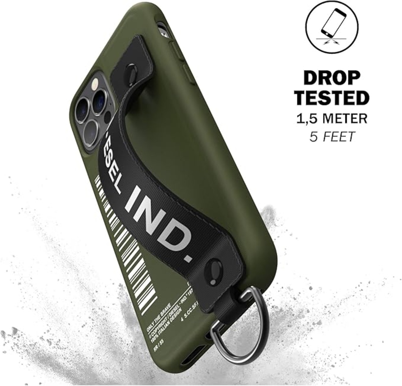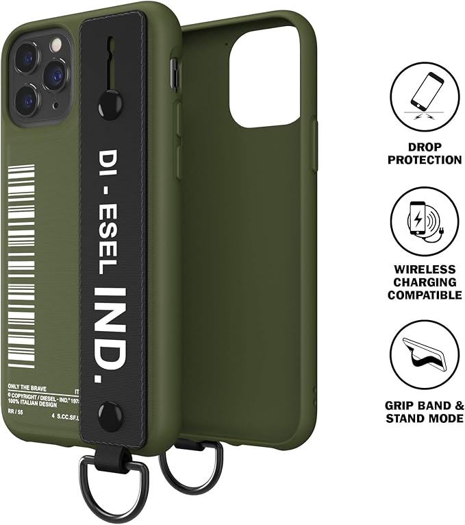 DIESEL iPhone11 Pro ケース スマホスタンド ハンドストラップ FW20 ( ディーゼル iPhone 11 Pro, アーミーグリーン)