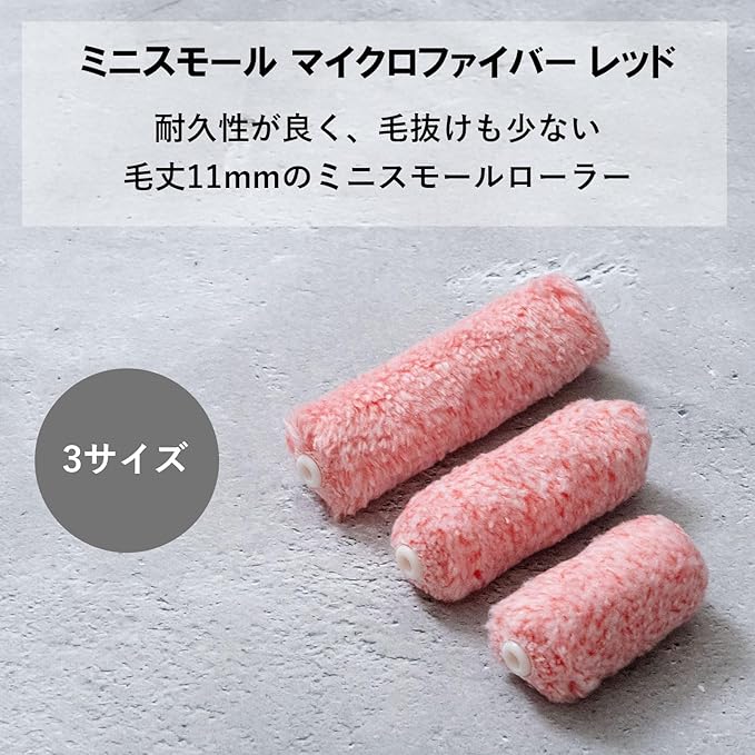 ハケ市 ミニスモール ローラー マイクロファイバー 混毛 レッド 2インチ 11mm 10本 セット 塗装 ペイントローラー