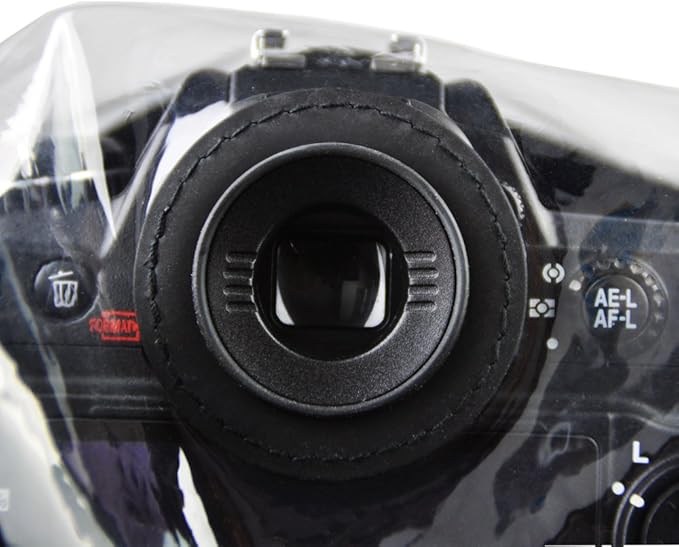 【接眼レンズ固定方式】接眼レンズ固定方式により、レインコート、特に透明な窓部分をカメラにしっかりと固定できます。