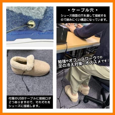 エネヒート 電熱ルームシューズ(USB電源式) 足元を温めるヒーター付スリッパ (亜麻色)