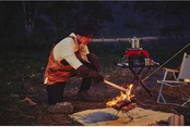 【使用シーン】ソロやデュオキャンプにちょうど良い小型サイズの焚火台です。付属の焼網でバーベキューも楽しめます。