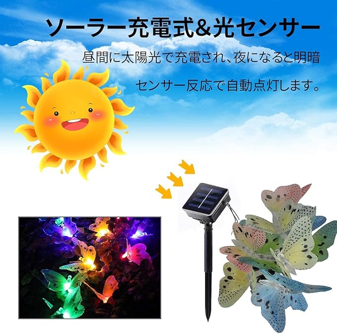 MOTOSTAR ストリングライト ソーラー led 屋外 12 led バタフライイルミネーションライト太陽充電 IP65防水 クリスマスライトソーラーパネル飾りライト パーティー新年学園祭屋外室内庭対応 日本語説明書付き