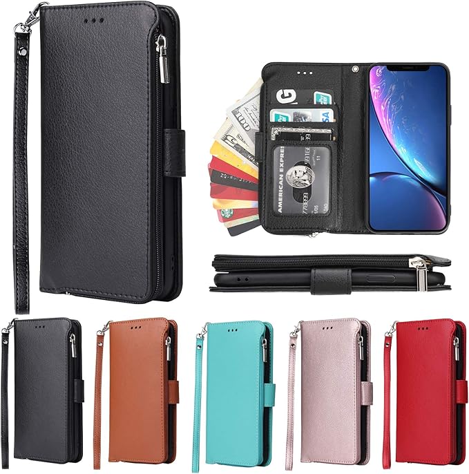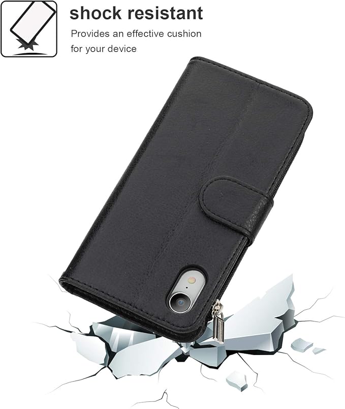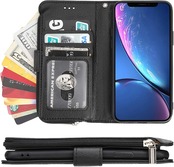 Eastwave アイフォン XR ケース 財布型 iPhoneXR ケース 手帳型 iphone xr ケース 財布型 ICカード コインポケット ストラップ付き カード 収納 小銭入れ ファスナーポケット付き PUレザー 5色ブラック