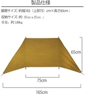 【製品仕様】展開サイズ : 約幅165(上部75)cm 高さ65cm; 収納サイズ : 約37cm 27cm ●重量 : 約1.00kg。素材 : フレーム:鉄 生地:コットン100%(綿洗い加工)