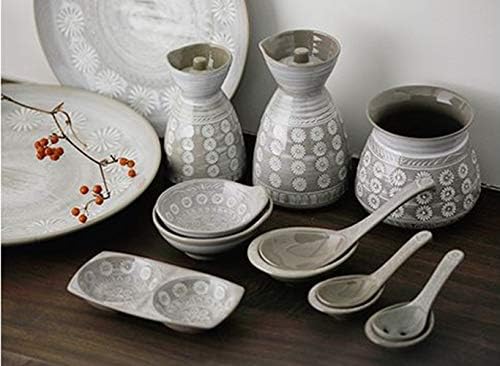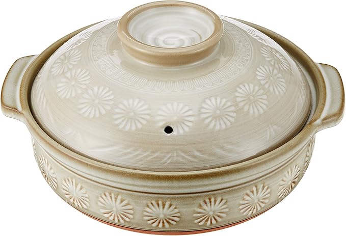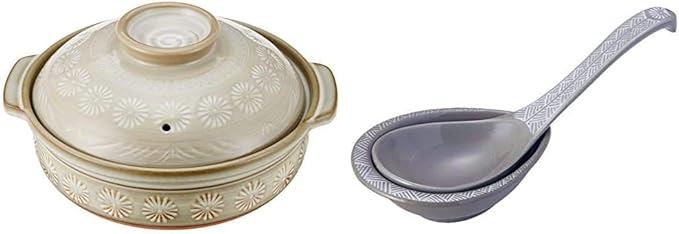 萬古焼 銀峯 花三島 土鍋 (深鍋) 9号 4-5人用 52013 & 萬古焼 レンゲ 大 台付 花三島 20011【セット買い】
