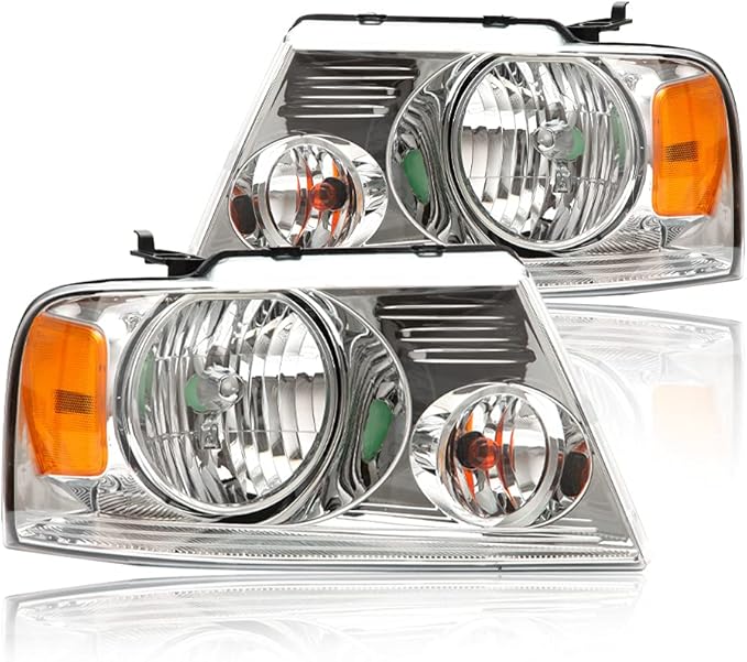 CNNELL ヘッドライト 04-08 フォード F-150 Pickup/06-08 Lincoln Mark LT (04 F150 ヘリテージ/フレアサイドベッドモデルには非対応) クリアレンズ クロームハウジング アンバー リフレクター