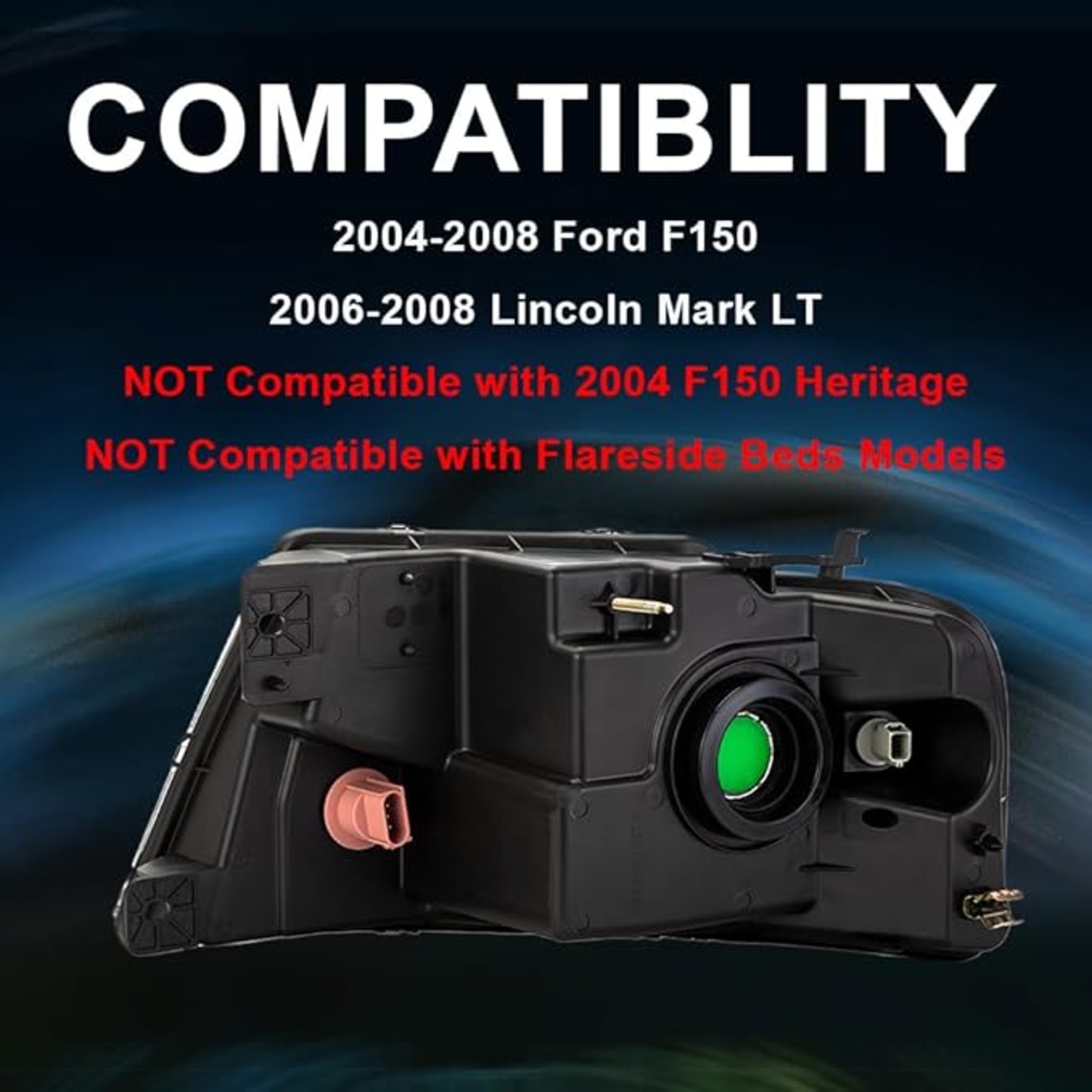 車両互換性 - ヘッドライトは2004-2008 Ford F-150 F150ピックアップ、2006-2008 リンカーンマークLTと互換性があります。 注意: 2004 F150 Heritage/Flareside Bedsモデルには適合しません。