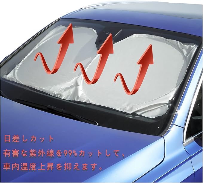 ※フロントガラスに取り付けることで、有害な紫外線を99%カットして、車内温度上昇を抑えます。