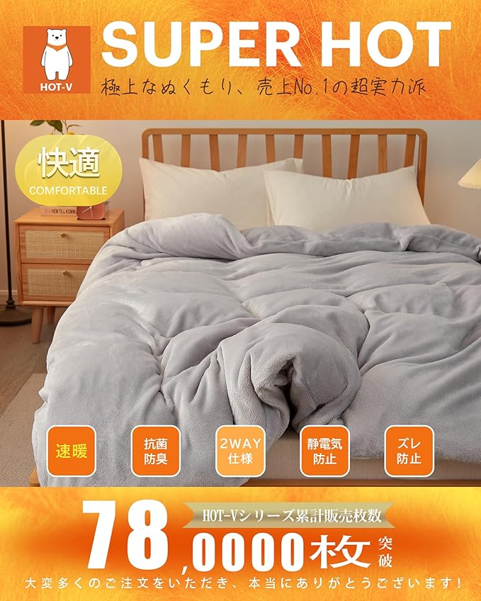 【HOT-Vシリーズ】人気のHOT-Vシリーズ、今年で6周年!5年連続こたつ布団第1位 、敷きパッド第1位 、掛け布団第1位 、2年連続こたつマット第1位 、こたつ布団セット第1位 、5冠達成!合計78萬枚突破!大変多くのご注文をいただき、本当にありがとうございます。