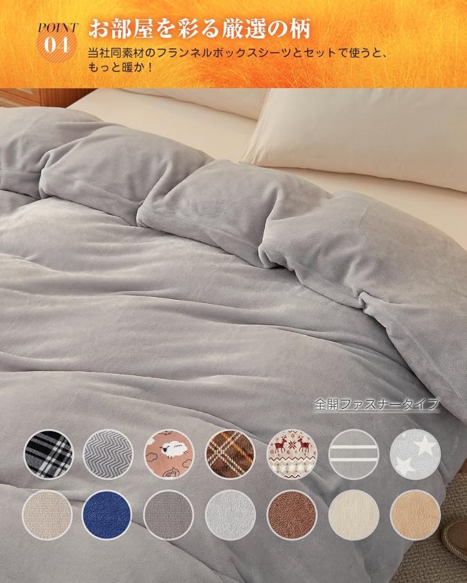 VK Living 掛け布団カバー 冬 シングル あったか フランネル 布団カバー 【SUPER HOT】毛布にもなる2WAY仕様 抗菌防臭 掛けカバー 全開ファスナー 8ヶ所ループ付き 150 210cm グレー