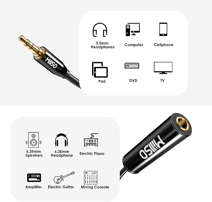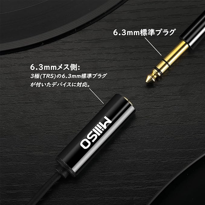 6.35mm 3.5mm 変換 MillSO 6.3mm標準ジャック(メス)→ステレオミニプラグ(オス) ヘッドホン端子 ステレオ変換 標準プラグ ミニプラグ 変換 金メッキ ヘッドフォン/ミキサー/ギター/アンプ/ピアノ等対応 30cm ブラック