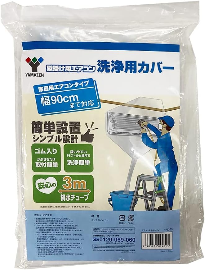 山善(YAMAZEN) エアコン洗浄カバー 幅90cm 排水チューブ3m 取付簡単(ゴム入りでかぶせるだけ) 壁掛け用 エアコン 洗浄用カバー クリーニング YAK-90