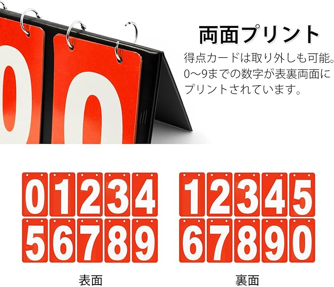 両面プリント 得点カードは取り外しも可能。0~9までの数字が表裏両面にプリントされています。