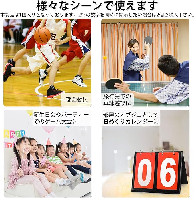 スポーツ対戦の得点記録に! 友達や家族でテニスやバスケットボール、バトミントンなどの得点協議を楽しむ際の得点経過をきろくするのに役立ちます。