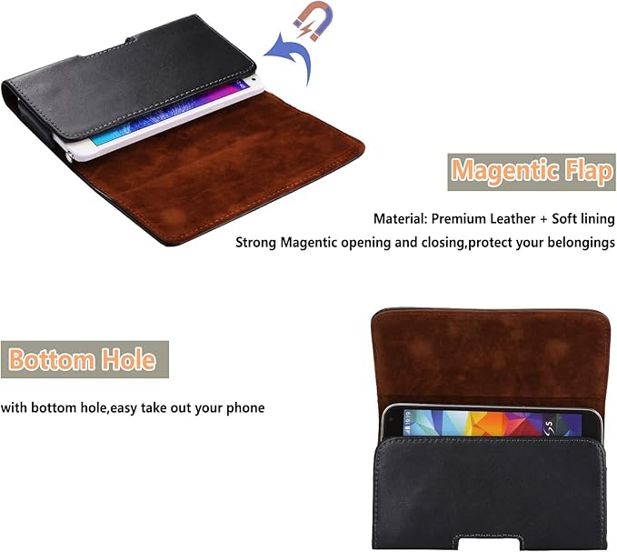 ベルトクリップのデザイン:高品質のテクスチャードレザーにより、このレザーフォンホルスターはエレガントで耐久性があり、柔らかく、防水性があります。さらに、スリムでコンパクトで、かさばりません。