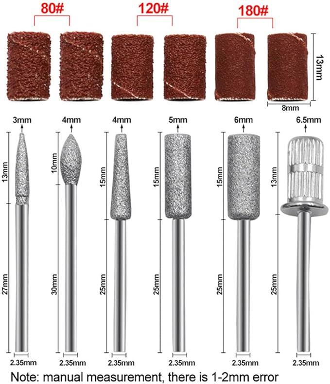2.大型円筒研磨針:大きな爪を磨くために使用される、ポリッシュネイル根、削除カルス、厚い角質を取り除き、削除釘、等。