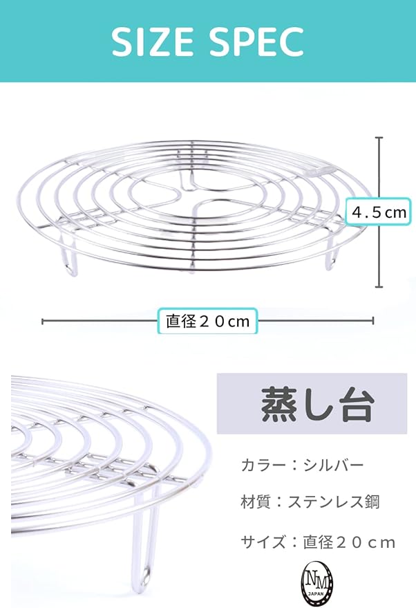 [NMJ] 蒸し台 蒸しプレート 蒸し皿 【シルバー/ステンレス製(直径20cm)】 蒸し スタンド