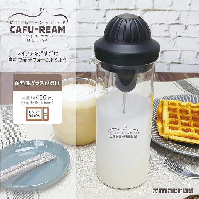 マクロス ミルク 泡立て器 クリーマー 電動 フォーマー フォームドミルク 耐熱ガラス容器 450ml セット MEK-94
