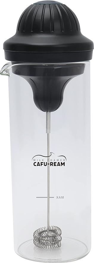 簡単にフォームドミルクが作れる耐熱ガラス、電動フォーマーのセット。