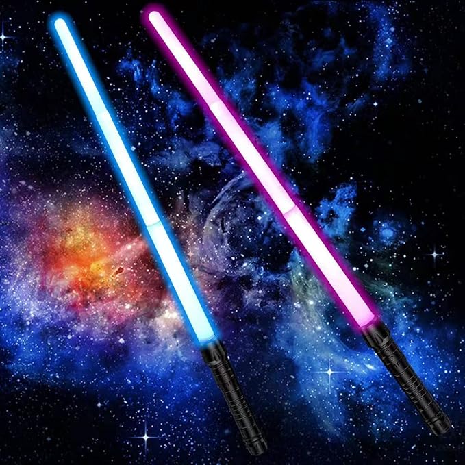 子供用ライトセーバー 2イン1 サウンド付きデュアルセーバー (モーションセンシティブ) ハロウィンパーティー、クリスマスプレゼント クリスマス誕生日ギフト 伸縮式 伸縮式 折りたたみ可能なライトセーバーセット