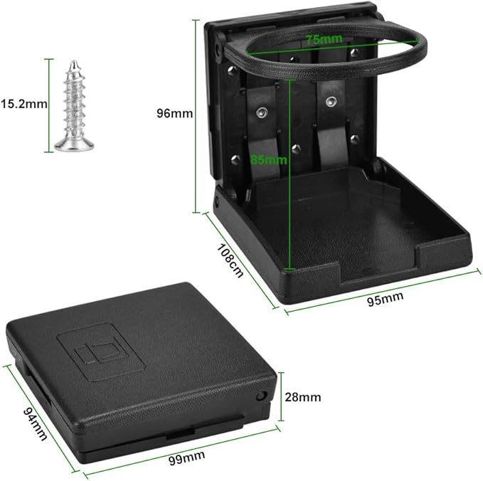 【折りたたみ式】:折りたたみのドリンクホルダーは使わない時に極小型のかたちに折り畳まれるので、スペースを節約できる。閉じたときは僅か28mm、開いたときは100mm。省スペース設計ですので狭い場所に設置しても邪魔になりません。また、調整可能なリテーナーアームにより、飲み物(カップ、缶など)を最大に保持するできます。