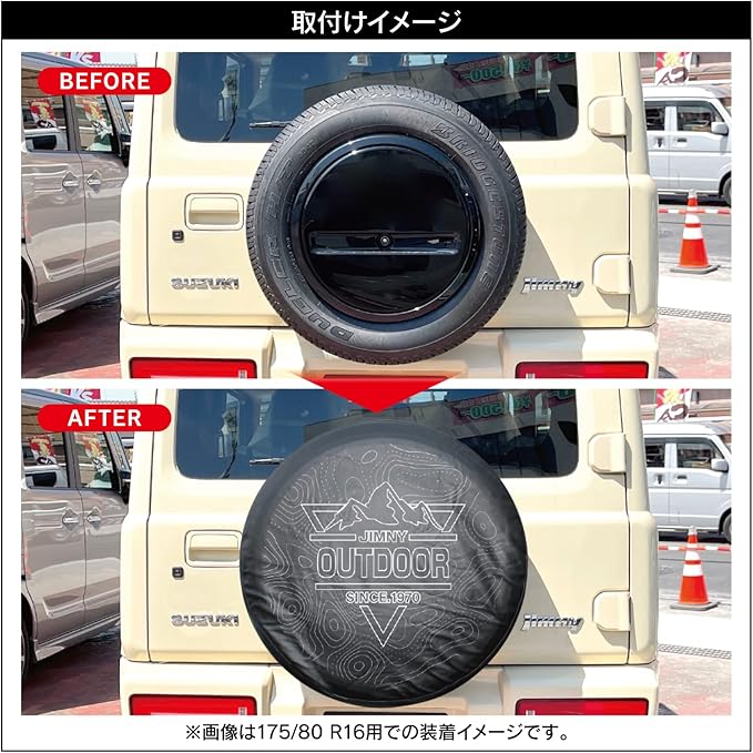 紫外線や汚れからスペアタイヤをカバー! 耐久性が高く汚れに強いPVCレザー製。 全16デザイン。 ※タイヤカバーは消耗品です。使用環境によって経年変化(変色、退色、生地の劣化)の可能性がございます。
