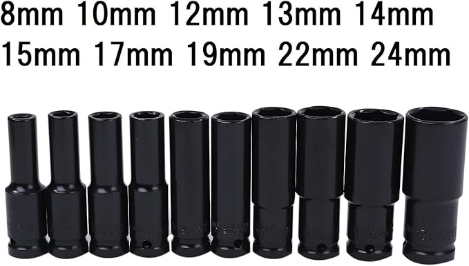 ディープソケット 10本セット 六角 差込角1/2インチ 12.7mm インパクトレンチ ロングソケット 24mm 22mm 19mm 17mm 15mm 14mm 13mm 12mm 10mm 8㎜ MK-090