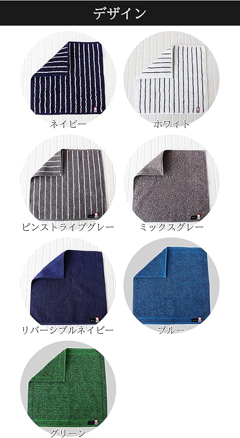 サイズ:約25cm 25cm 重量:約25g/枚 デザイン(認定番号):ネイビー(第2021-1129号)、ホワイト(第2022-1032号)、ミックスグレー(第2021-918号)、ピンストライプグレー(第2021-917号)、リバーシブルネイビー(第2022-1326号)、ブルー・グリーン(第2022-1325号)、しましまネイビー・しましまグレー(第2022-2634号)、テールグリーン・ブラック(第2023-2689号)、無地Aアソート4枚(第2021-945号) 素材:綿100% 生産地:日本(愛媛県今治市) ※モニターの発色の具合により実際のものと色が異なる場合がございます。 ※清潔でコンパクトな圧縮パックでお届けいたします。開封してしばらくすると空気を含み、元の状態に戻ります。配送状態により元に戻っている場合がございます。