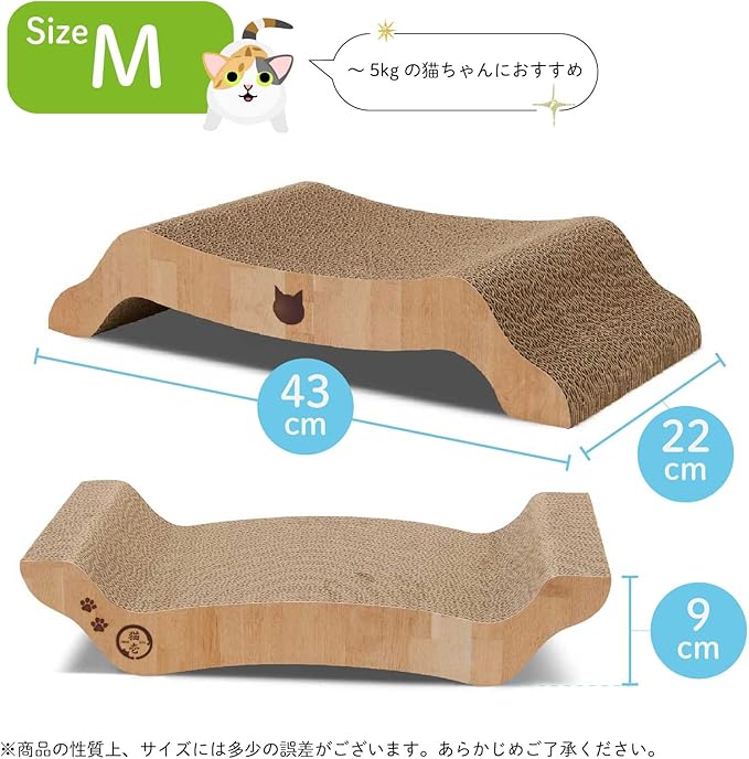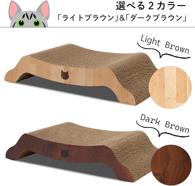 【高密度ダンボールで長持ち】ダンボールは薄いダンボールを貼り合わせています。薄いタイプを使用することで密度が高くなり、猫のとぎ甲斐アップだけでなく、耐久性も持たせています。