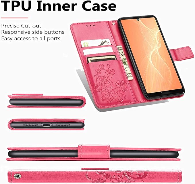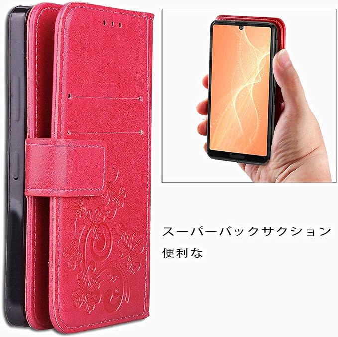 AQUOS sense6 ケース シン フィット アクオス SH-54B おしゃれ 純色 四つ葉のクローバーの印 PUレザー 上絵 手帳型 カード入れ SHG05 財布カバー スタンド機能 耐衝撃 防塵 耐久性 装着やすい 吸着の機能 キラキラ 胡蝶 ラインストーン デコ メチャ可愛い アクオス センス6 SHM19 スマホカバー (AQUOS Sense 6, ローズ)
