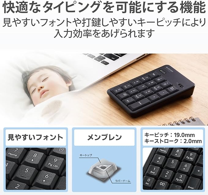 エレコム テンキー Bluetooth 静音設計 抗菌 Windows/Chrome OS/macOS対応 ブラック TK-TBM023SKBK