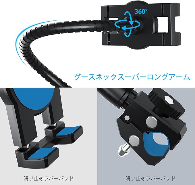[フレキシブルアーム] 長さ250mmの頑丈なプラスチック製のアルミニウム製グースネックアームを備えているため、ぐらつくことなく簡単に操作できるように任意の形状に曲げることができます. トレッドミルなどのフィットネス愛好家に最適です.また、カバー付きの滑り止め保護パッドは、タブレットや携帯電話が引っかいたり滑ったりするのを防ぎます.