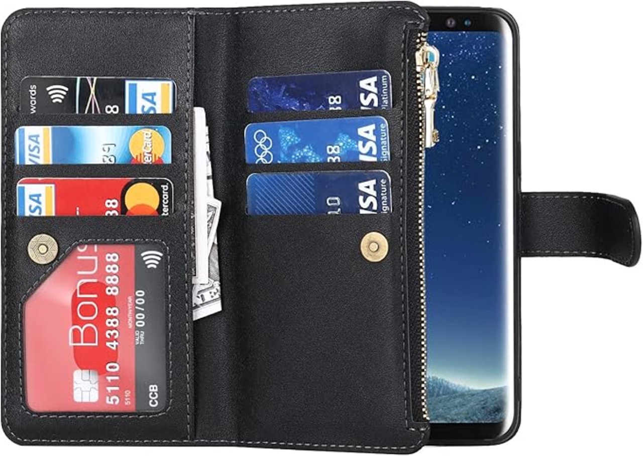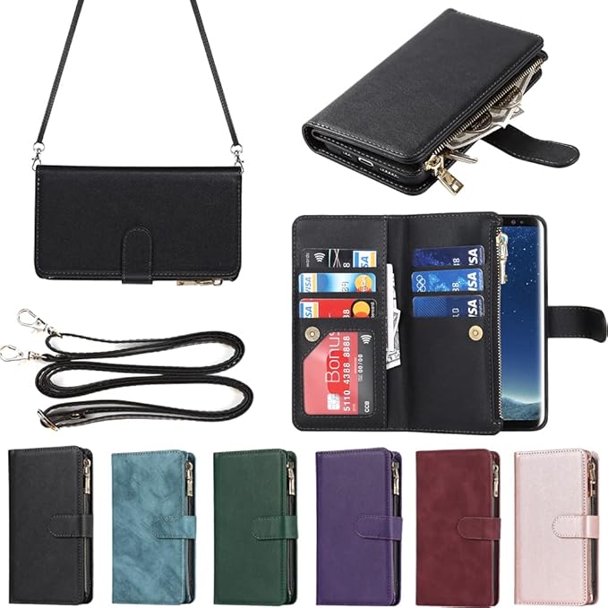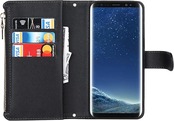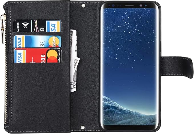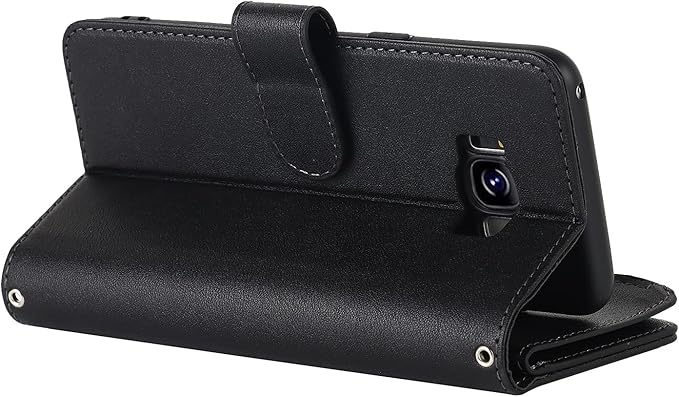 Eastwave サムスン ギャラクシー S8 ケース for Samsung Galaxy S8 縄掛けケース 手帳型 財布型 ICカード コインポケット ストラップ付き カード 収納 小銭入れ ファスナーポケット付き PUレザー 6色 ブラック
