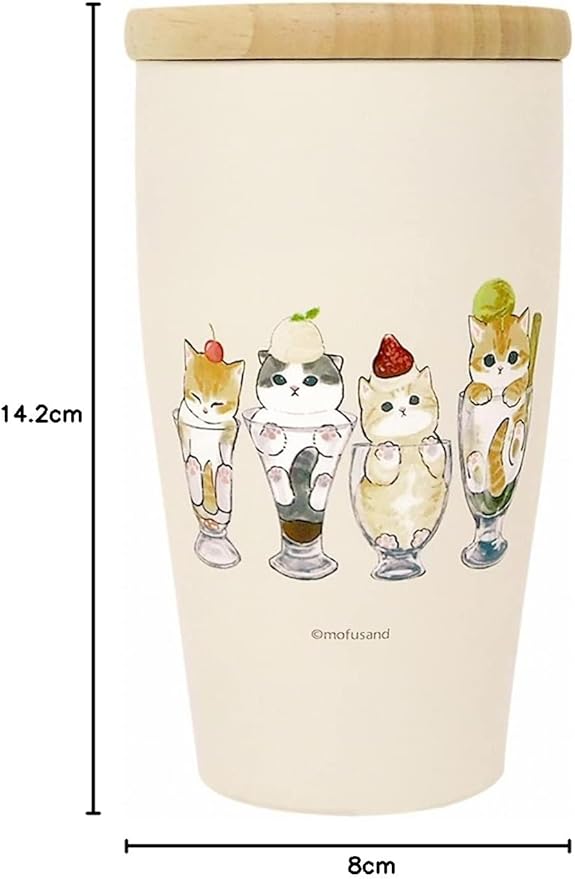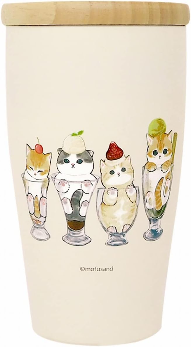 東亜金属 mofusand (もふさんど) 木蓋付き ステンレス タンブラー 350ml 【 猫パフェ 】 53-2092 ベージュ
