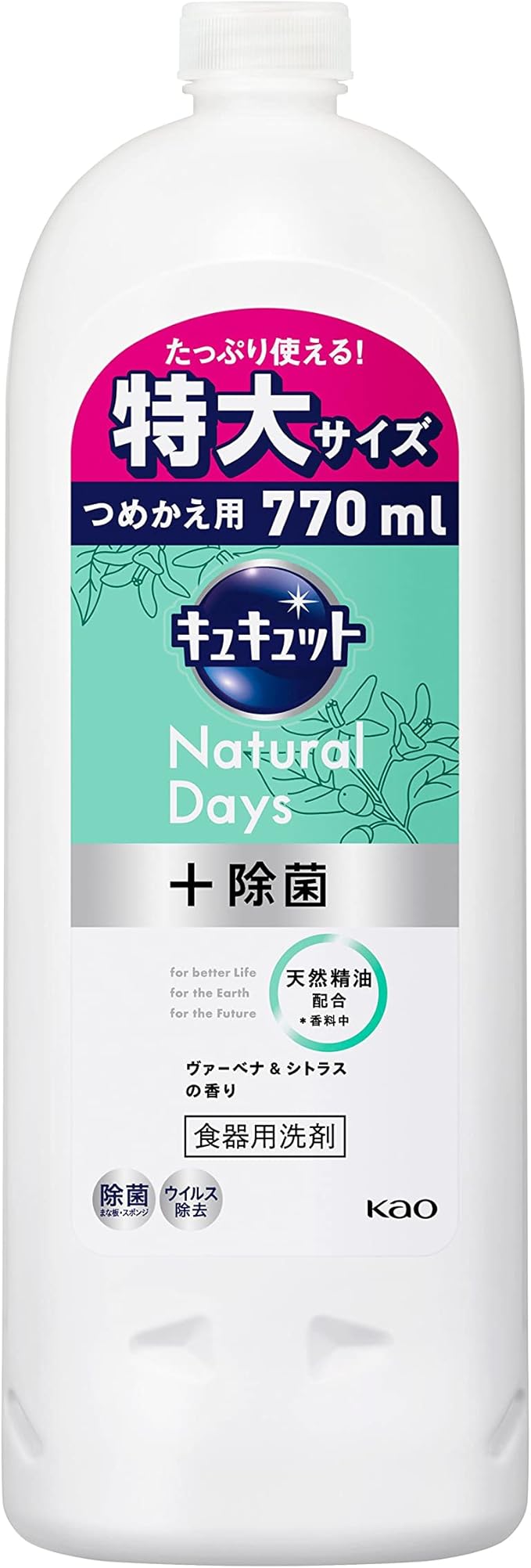 キュキュット Natural Days+除菌 ヴァ―ベナ&シトラスの香り つめかえ用 770ml