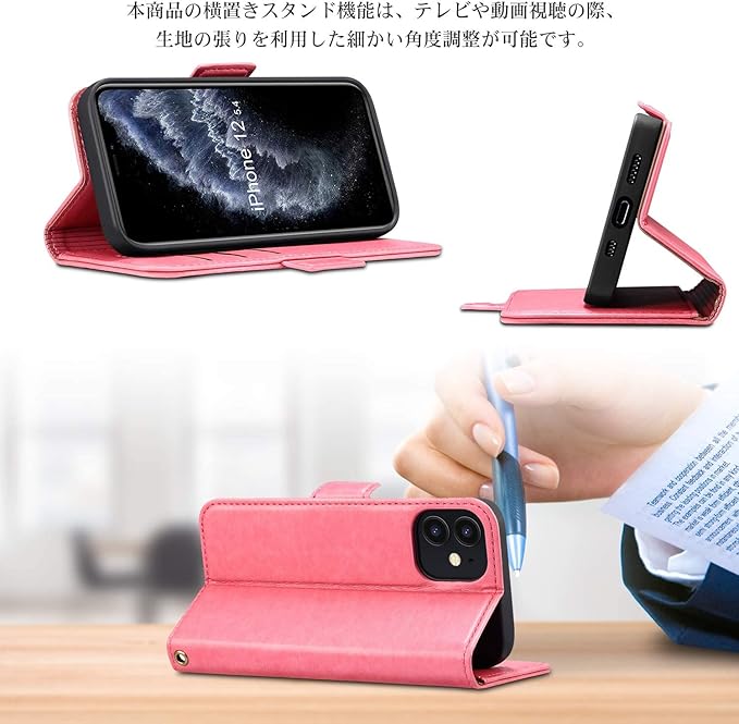 使い勝手抜群のiphone 12 mini手帳型ケース、手帳型カバーの機能が搭載して、内側には三つのカード入れとフリーポケットがつき、カードや定期券の収納に優れていて、横置きにしてスタンドになり、動画視聴がすごく便利なスマホケースです。