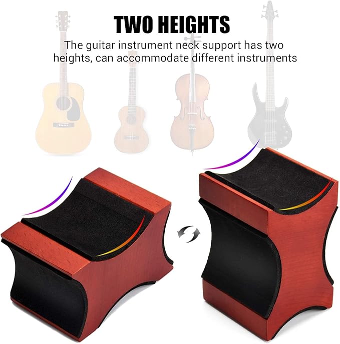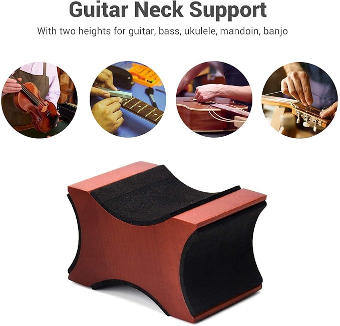 [交換可能な高さ]このギターネックレストは2つの高さに交換可能です。これは、楽器が立っていても横になっていても、弦楽器(ベース、エレキギター、バイオリン、マデリーンなど)での作業に最適です。 弦の交換やセットアップ、その他の修理が簡単にできます!