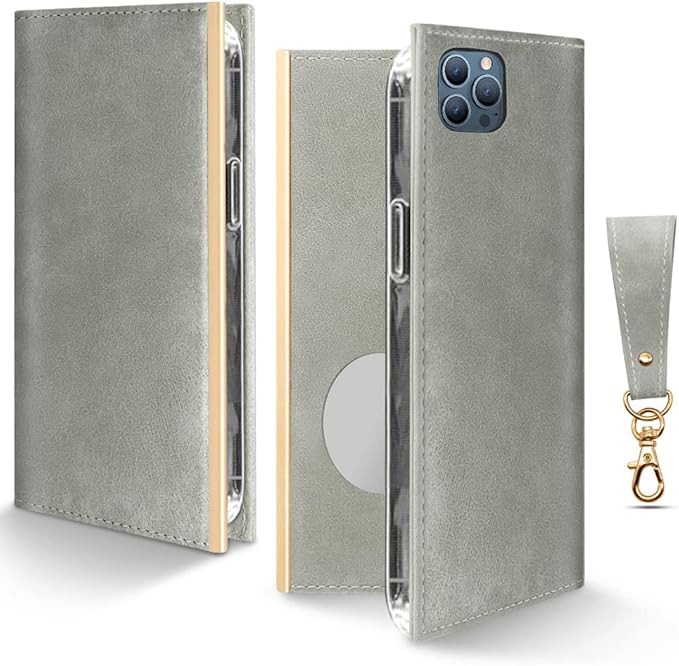 OCTERR iPhone 13 ケース 手帳型 手帳 鏡付き マグネット式 スマホケース 財布型 アイフォン13カバー カードポケット スタンド機能 携帯ケース ダイアリーケース PUレザー 女性 耐衝撃 全面保護 ファッション おしゃれ 美しい グレー