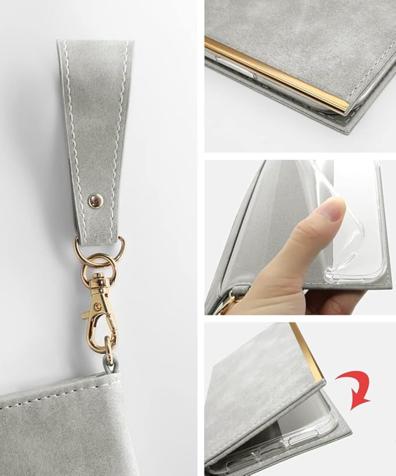「便利なデザイン」 ①ミラー付き:背面の收纳部分には小さなミラーを配置。食事の後にリップを直したり、気になる前髪のチェックに使ったり...ちょっとした身だしなみの確認に便利なアイテムです。②マグネット付き:マグネット付いて、簡単に開け閉めができるから、片手で開きたい方にもとても便利です。 ③ストラップ付き:カバンの中入れておいてもすぐに携帯電話を見つけることができ、とてもり便利なデザインです 、もちろんケースから取り外すこともできて、お好みのストラップを入れることもできます。