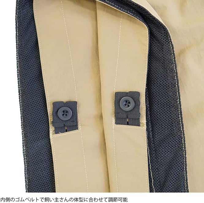 愛犬:サイズに合わせて調整できるアジャスター付き 飼い主さん:内側のゴムベルトで飼い主さんの体型に合わせて調節可能