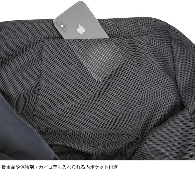 飛び出し防止リード2本付き で、貴重品や保冷剤、カイロ等も入れられる内ポケット付き